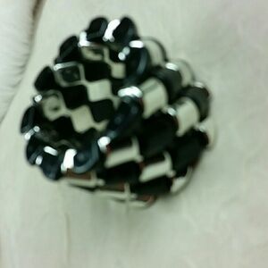 Black and silver tone diagonal square acrylic bracelet. Great condition no discoloration, no signs of wear.