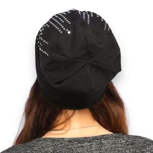Black Silver Sequins Waterfall Lightweight Cotton Beanie Cap - NEW