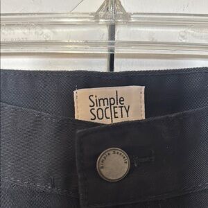 Black Simple Society Denim Midi Skirt with Cargo Accents Slit Hem