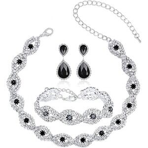 Black Siver Crystal Necklace Set CZ Cubic Rhinestone Necklace Bracelet Earrings