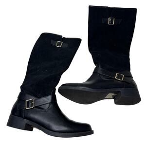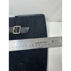 Just Fab US 9.5 Black Raelynn Faux Suede Buckled Block Heel Knee High Boot