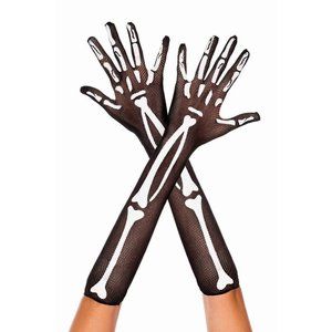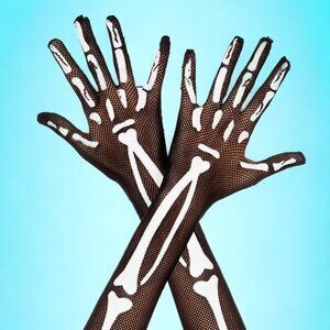 Black Skeleton fishnet Gothic elbow gloves Halloween Costumes.