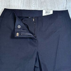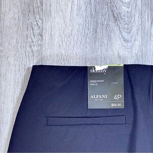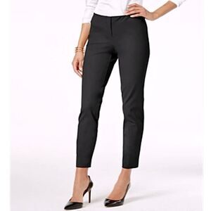 Size 4P black skinny ankle pants. High waist style. Button, hook/eye, and zipper closure. Elastic waist. Faux pockets in back. New with tags. Waist 14in. Inseam 26in. Rise 8in.