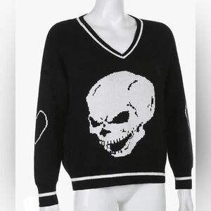Black Skull Casual Long Sleeve Knitted Sweater Large