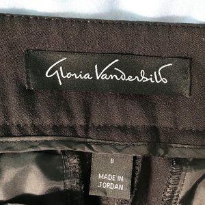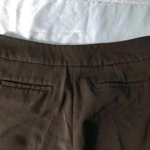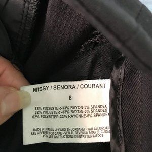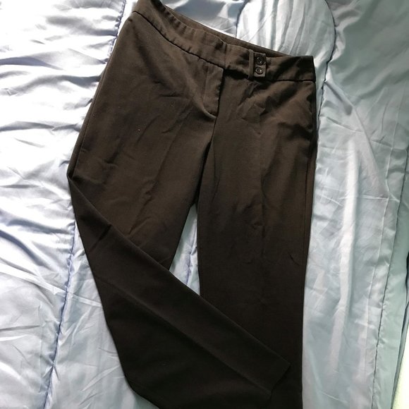 Black slacks with button waist band in like new condition 62% polyester, 33% rayon, 5% spandex.