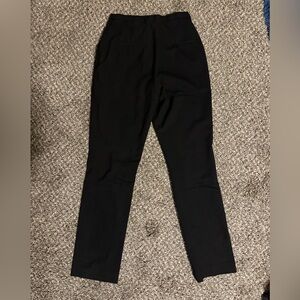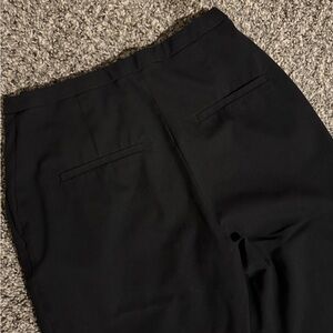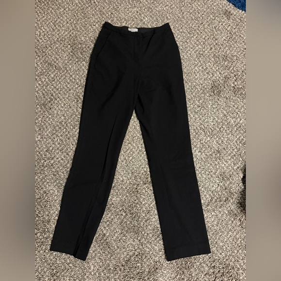 Most comfortable black slacks, elastic waistband, pockets, flare ends