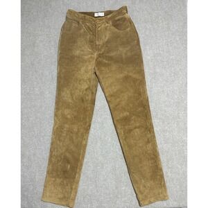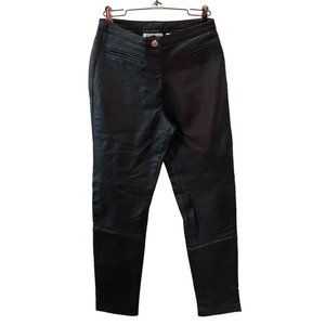Really nice lined black slacks! Dressy enough for an event, or depending on your top & shoes, maybe a day at the office. Front Zip. Material: 52% Acetate / 48% Polyester ** Lining: 100% Acetate. High waisted. Waist 13”. Waist to crotch measurement is about 11”. Inseam is about 31”.