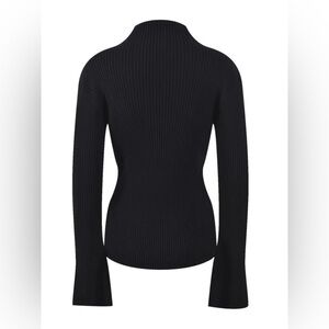 Mock turtleneck sweater with sleeve cutout and decorative gold embellishment. Very warm and soft.