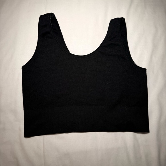 Stylish black sleeveless crop top. Perfect for casual wear.