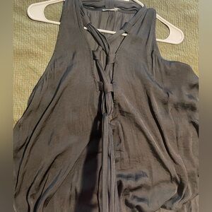 Black Sleeveless Blouse with Tie Detail