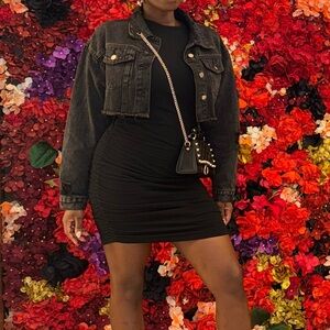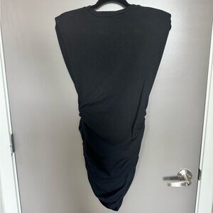 Black Sleeveless Dress with Ruched Sides and Shoulder Pads