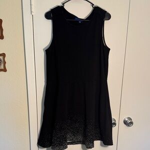 Black Sleeveless Dress with White Dotted Hem and Pockets
