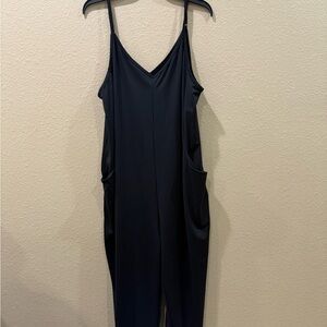 Chic black sleeveless jumpsuit. Perfect for any occasion.