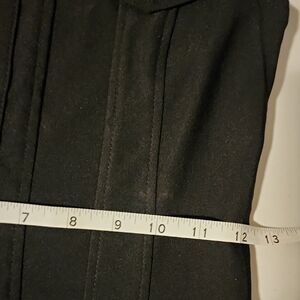 This chic black sheath dress features a sleeveless design and a sophisticated square neckline, perfect for casual and work settings. Its mini length and form-fitting silhouette offer a modern and stylish look.