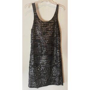 Black Sleeveless Textured Print Dress Studded Straps XL Polyester Spandex XL