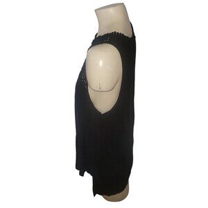 Black Sleeveless Top With Crochet Yoke Design Keyhole Back Closure Women’s Mediu