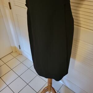 black wrap dress, ann taylor, business casual, sleeveless dress, collared dress, v-neck, petite size, size 6P, early 2000s style, adjustable fit, workwear, minimal, classic, little black dress, y2k fashion, versatile, thick material, all season, office wardrobe, modern professional, timeless style, solid black dress