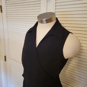 Black Sleeveless Wrap Dress Collared V Neck Ann Taylor Size 6P Business Casual