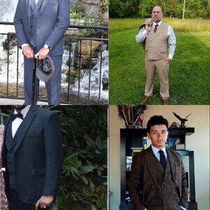 Features: Classic slim fit silhouette with a stylish herringbone tweed pattern. Includes a notch lapel blazer with two buttons, a double-breasted vest with three buttons, and casual elastic band trousers. Designed to highlight your shape and give a polished, sophisticated look. Lightweight and breathable—it’s comfortable for all-day wear at any formal occasion.