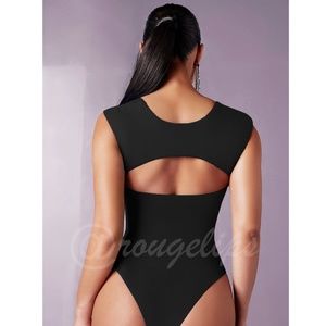 Black Slim Fit Bodysuit Sweetheart Décolleté Neckline Cut Out Back