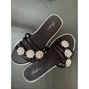 Black Slip on Flower Sandal EU Size 38