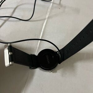 Sleek black smartwatch with a USB charging cable. Perfect for tech enthusiasts.