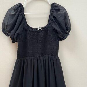 Black Smocked Puff Sleeve Maxi Dress โ Flowy & Feminine