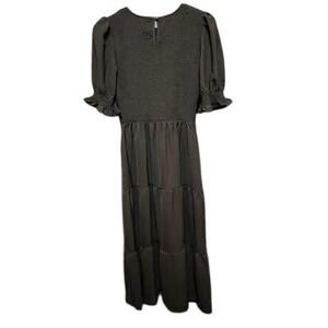 Black Smocked Tiered Maxi Dress Puff Sleeve Womens Dress