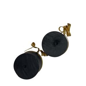Black Soapstone Taper Candleholders Goldtone Metal Ribbon