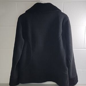 Black Soft Fleece Jacket Lined with Sherpa Fleece & Accents on Cuffs & Collar