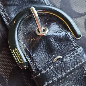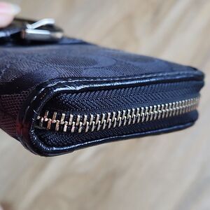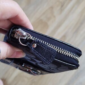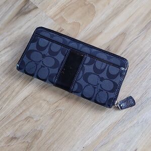 Black Soho Signature Large Zip Around Wallet, silver hardware. Lots of room and card slots to store all your needs. No flaws, gently used. canvas and leather.