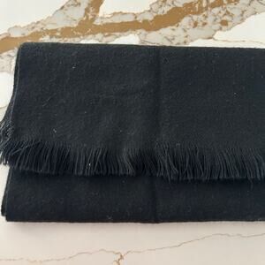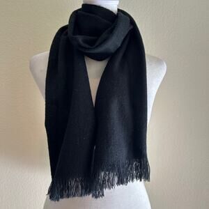 Black Solid Acrylic Scarf Neck Warmer OS Unisex Winter Accessories Tassel Hem