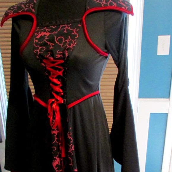 Black Sorcerer's Dress with Red Laced Front. Spandex Material. Fits Most