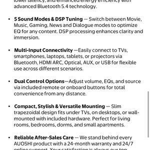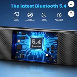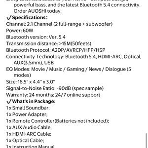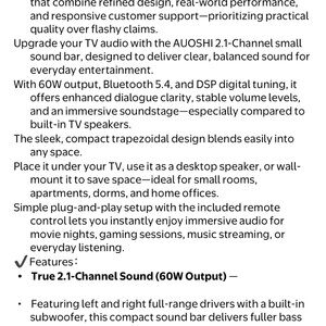 Small Sound Bar for TV, 2.1ch 60W Compact Soundbar with Built-in Subwoofer, Bluetooth 5.4, 5 EQ Modes, HDMI ARC/Optical/AUX/USB, 16.5''