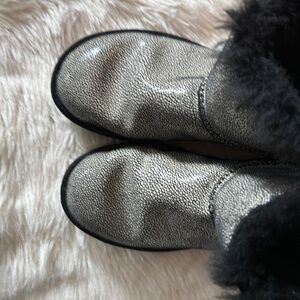 Black Sparkly Bling Sting Winter Ugg Boots. Women’s 7. Pre-owned. Very minor general wear including creasing and discoloration on soles. 2 lbs 3 oz