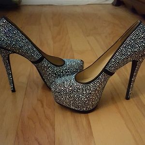Worn once from a smoke free home. Heel is 5" tall. Platform under the toe area is 2" tall.