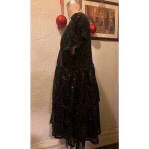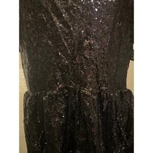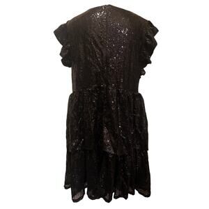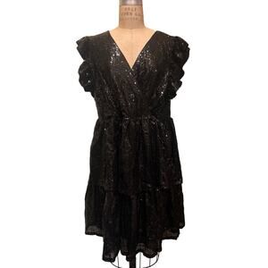 Black Sparkly Sequin V-neck Ruffle Sleeve Tiered Dress Size 4XL