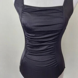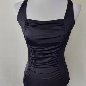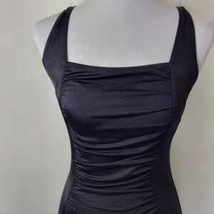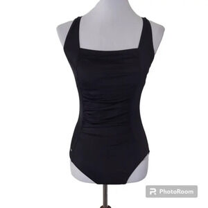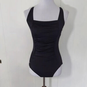 Black Speedo Ruched Center Panel Criss Cross Back One Piece Swimsuit