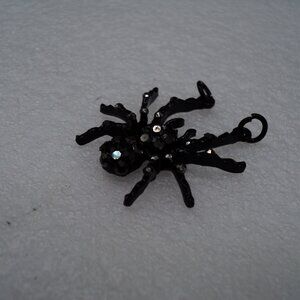 Black Spider crystal pendant...Great Halloween Necklace 1.19"