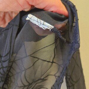 Black Spiderweb Mesh Mock Neck Long Sleeve Top Sheer Goth Halloween Costume XS