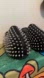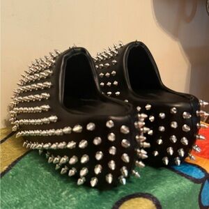 Edgy black clogs with silver spikes. Perfect for a bold look. Dolls Kill