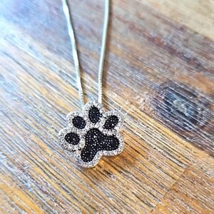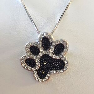 Black Spinel Rhodium Over Silver Paw Pendant with Box Chain