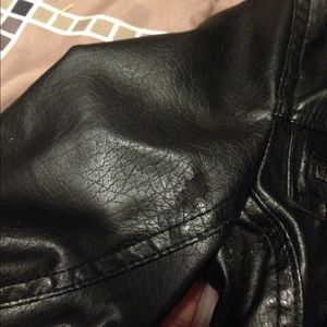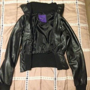 Black Spring Jacket ,zipper up the middle,tall collar,long sleeves,has a small tear break on sleeve,can't really see it cause the jacket so dark but over all a comfortable spring jacket.
