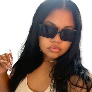 Black Square Frame Black Tinted Lens Sunglasses make for a stunning statement. Tinted. Square frame. Ultra light. Eliminates glare, blocks harmful UV and absorb harmful HEV. Sunglasses case included✨