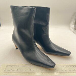 Black Square Toe Comfort Kitten Low Heel Ankle Boots Pull On Booties Winter Shoe