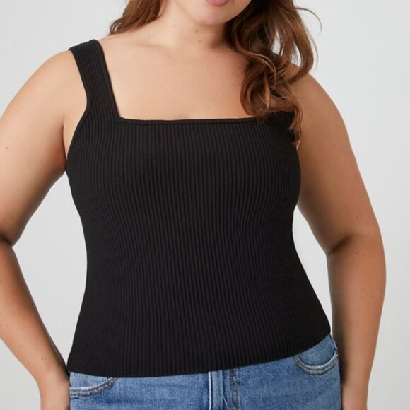 Black Square-Neck Sweater Knit Tank Top 0X - NEW