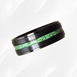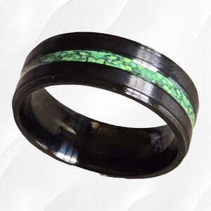 Black Stainless Steel 8mm Inlaid Synthetic Green Band Fashion Ring Size 11