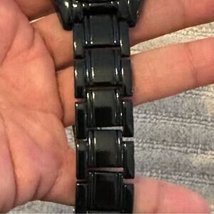 Black Stainless Steel Bling watch Needs Battery NWOT. I bought for myself and never wore it or adjusted the band so the battery died. It just needs a battery. Bling watch with rhinestones. Black metal band.