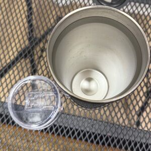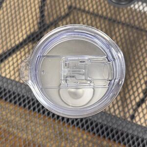 Sleek black tumbler with clear lid. Ideal for beverages on the go. Brand new, never been used.
