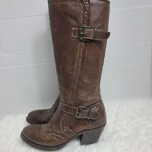 Black Star Women's Boots Size 8.5 Brown Leather Studded Zipper Western Cowboy